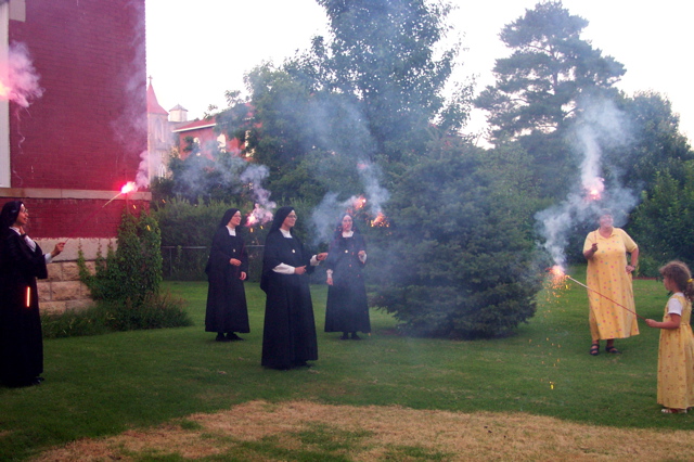 The annual trip to St. Marys, Kansas has become a recent family tradition. Every year about a dozen of us converge on the quiet town to pay a visit to my Aunt Johanna, alias Sister Mary Athanasius. Now, in Kansas, just about everything is legal, but I observed that the sisters in St. Marys weren't exactly taking full advantage of their fortuitous geographical location. I noticed that Kansas has little to no legislation governing the use or sale of fireworks, a favorite pastime of mine. It seemed perfectly logical that nuns would love to partake in such a flaming-hot and dangerous tradition. As it turned out, nuns really like fireworks. I have supplied them with their yearly pyromania fix ever since.